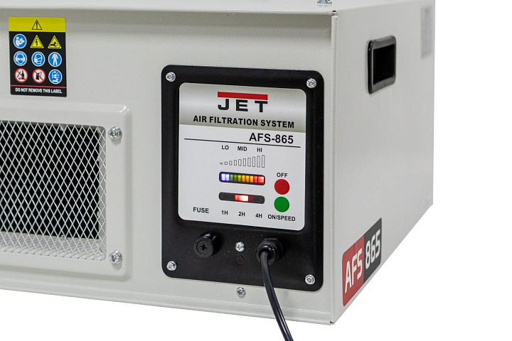 Система фильтрации воздуха JET AFS-865 предназначена для очистки воздуха в помещениях как производственных так и любых других , где требуется очищать воздух от частиц пыли или подобных загрязнений. Например в столярных мастерских, гаражах и других помещениях, где происходит загрязнение воздуха пылью или взвесью из частиц.